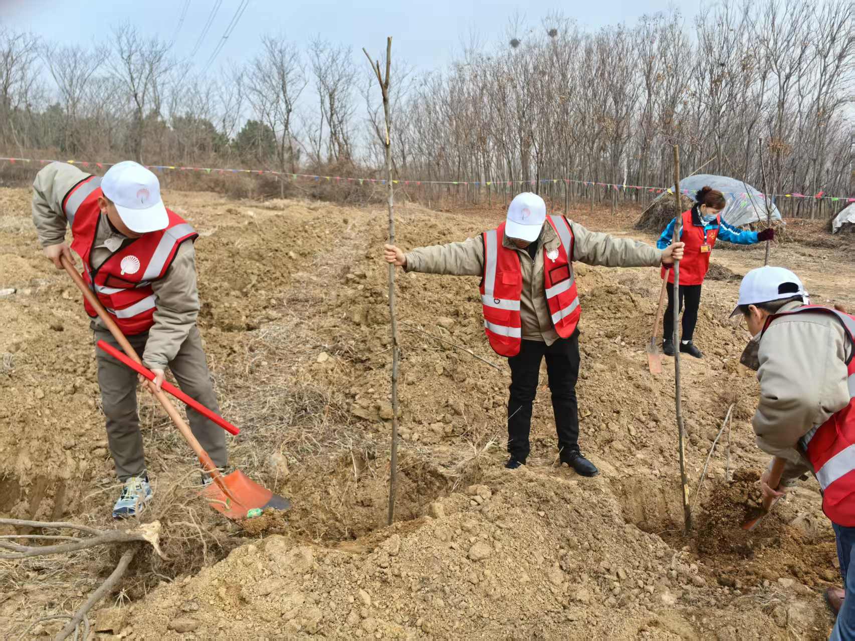 3月12日植樹節(jié)當(dāng)天,工會充分發(fā)揮引領(lǐng)作用,組織員工代表前往旺山開展義務(wù)植樹活動。植樹現(xiàn)場,大家揮鍬鏟土、扶苗填坑、提水澆灌,分工協(xié)作,干勁十足。一株株新栽的樹苗迎風(fēng)挺立,為初春的大地增添勃勃生機(jī)。